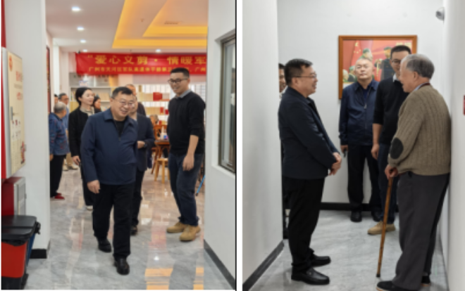 随后,调研组一行前往天河区军休三所参观,交流“活力军休”体系经验做法和“军休+长者”饭堂、“军休+非遗押花”等方面的探索和实践。
