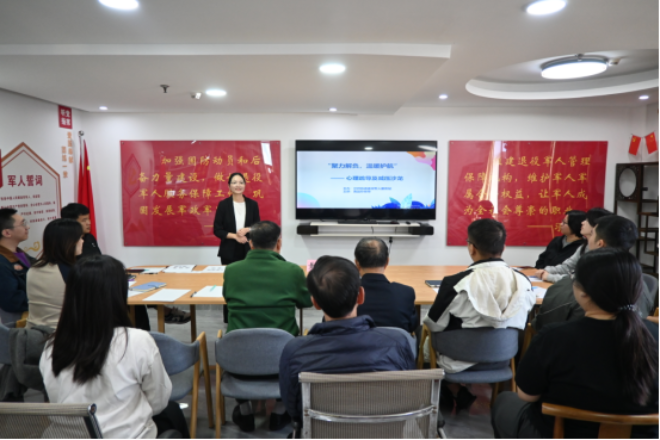 近日,深圳市沙井街道退役军人“红星堡垒户”会议室里暖意融融,一场专为退役军人精心策划的心理健康讲座在此温情启幕。22名退役军人及社区退役军人服务站专干齐聚一堂,怀着期待共同开启一场心灵滋养之旅,在专业引导下解锁心理调节新技能,为身心健康“充电赋能”。