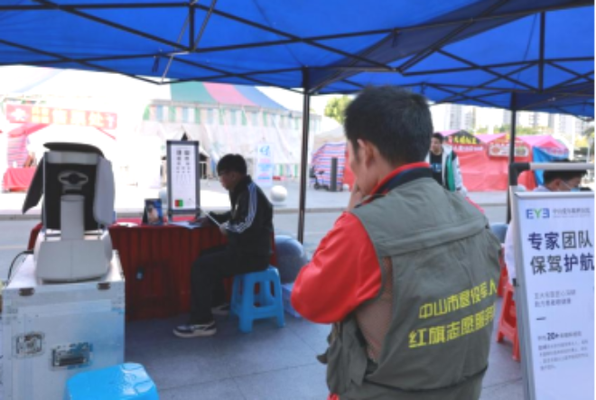 医疗保健区:来自中山市源田骨科医院、中山爱尔眼科医院、中山市松鼠口腔医院的退役军人医师为居民提供骨科、眼科和口腔检查及健康咨询等服务,惠及群众400余人次;