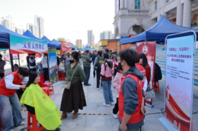 11月22日,由中山市退役军人事务局主办,中山市退役军人服务中心、中山港街道退役军人服务中心承办,各镇街退役军人服务中心及中山市爱国拥军促进会协办的“戎耀香山 与法同行”退役军人志愿服务集市暨法治宣传活动在中山市火炬高新区太阳城购物中心广场顺利举行。活动以“志愿服务暖基层,法治宣传促治理”为主题,组织七十余名退役军人志愿者为市民提供多元服务,并开展针对性法治宣传,彰显退役军人“退伍不褪色、服务不停步”的担当精神。