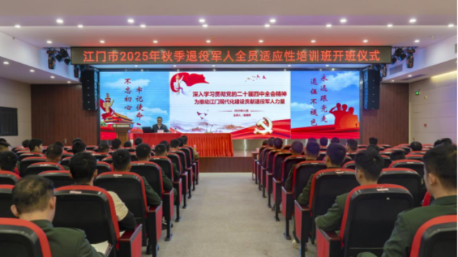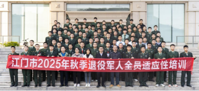 为助力退役军人迈好融入社会的第一步,近日,江门市组织2025年秋季自主就业退役士兵开展适应性培训,全市共482名退役士兵参加秋季适应性培训,其中95名退役士兵参加在广东南方职业学院举行的线下培训,387名退役士兵参加线上培训。