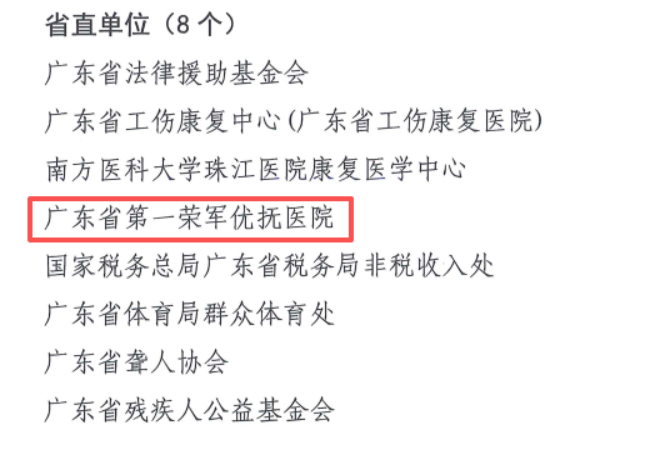 近日,广东省人力资源和社会保障厅、广东省残人联合会发布了关于表彰广东省自强模范暨助残先进的决定,广东省第一荣军优抚医院被授予“广东省残疾人工作先进集体”荣誉称号。