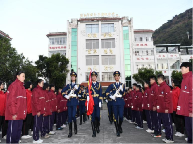 “这面国旗承载着无数革命先烈的热血和牺牲。”赤心国旗护卫队队长在国旗下讲话中表示,“它象征着民族的团结和奋斗精神,与华坪女高‘刚强、勤勉、宽厚、慈爱’的校训精神相得益彰。”一首师生合唱的《万疆》,将现场爱国氛围拉至沸点。这种互动式、体验式的爱国主义教育,燃起了学生们的爱国情、强国志、报国行,成为学校德育工作的生动课堂。“这次活动对我来说像是一次洗礼。”华坪女高一名学生表示,“我将以军人的纪律要求自己,以张校长的奉献精神激励自己。”