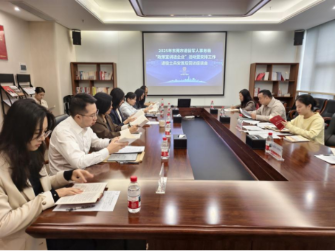 为全面检验退役军人安置成效,切实落实安排工作退役士兵安置政策,推动退役军人服务保障工作走深走实,近日,东莞市退役军人事务局联合市国资委组成专项工作组,深入投控集团、交控集团、东实集团和水务环境集团,开展“政策宣讲进企业”暨安排工作退役士兵安置后回访工作。