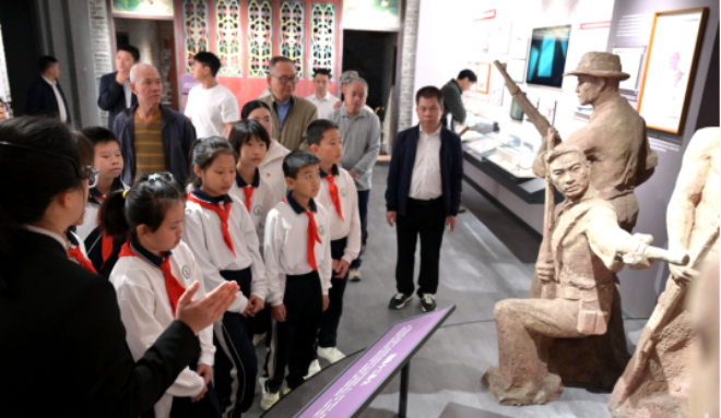 默哀结束后,两名少先队员代表以稚嫩却坚定的声音朗诵诗歌:“这盛世中华,将由我们用智慧、用汗水、用永不熄灭的热爱,继续书写辉煌。”诗句传递出少年一代对历史的铭记与未来的担当。随后,珠江纵队老战士后代讲述革命故事,鲜活的细节将听众带回烽火岁月。全体参与者有序瞻仰革命烈士纪念碑并敬献鲜花。活动尾声,全新升级的中山革命历史陈列馆正式向社会公众开放,成为此次纪念活动的重要亮点。
