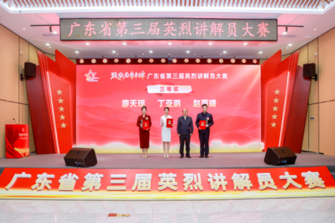 广东省退役军人事务厅党组书记、厅长王创表示,广东作为中国近代民主革命的策源地,具有深厚的红色文化底蕴。广东各级退役军人事务部门高度重视烈士褒扬工作,注重英烈讲解员队伍培养和建设,通过连续举办全省英烈讲解员大赛、培训,全力建设好英烈讲解员队伍。今年我省推荐的3名选手在“山河映忠魂”全国英烈讲解员大赛中斩获一、二等奖及优秀奖,实现英烈讲解员队伍成绩历史性突破。